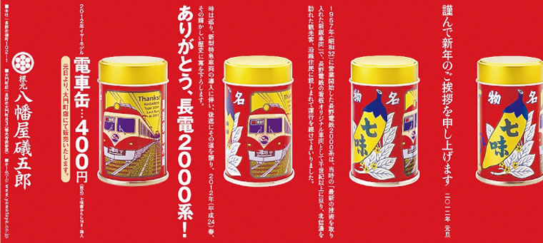2012年1月 特別賞 ![]() 株式会社 八幡屋礒五郎 2012年1月1日付 広告会社 |
