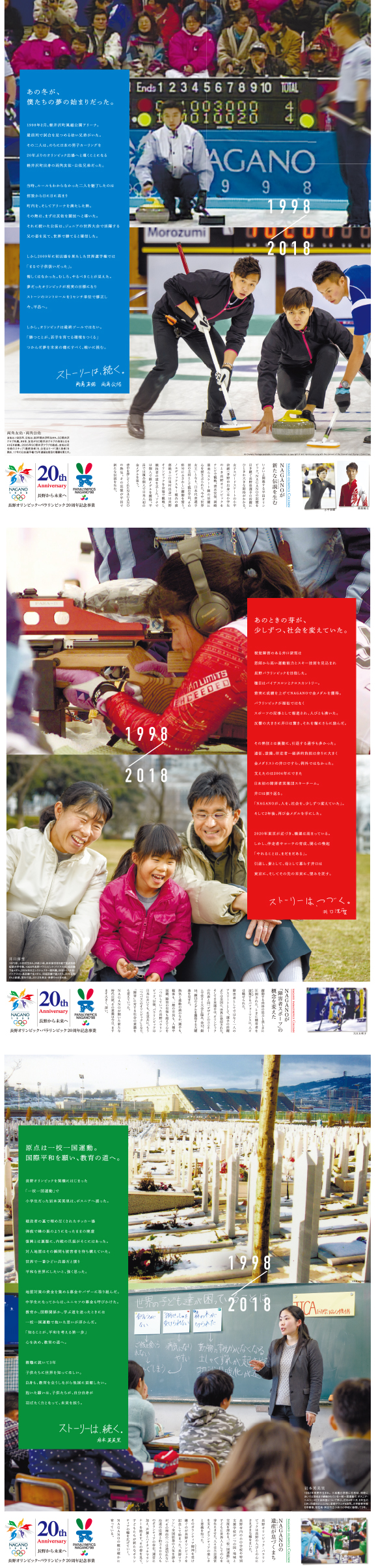 「第47回信毎広告賞」は、長野オリンピック・パラリンピック20周年記念事業実行委員会の全ページカラーシリーズ(2018年2月4日付・3ページ)が受賞しました。