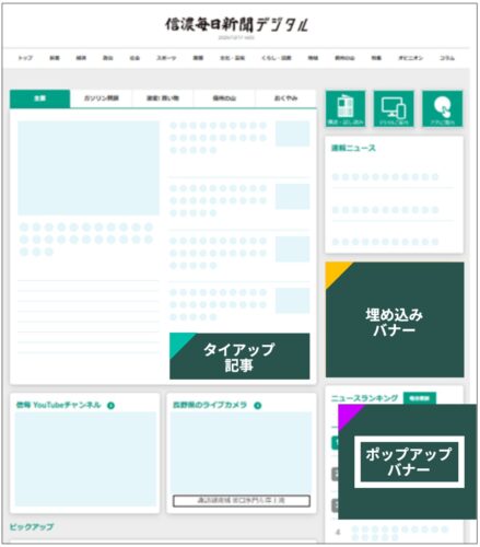 トップページまたは記事ページへの掲載で、それぞれ期間指定の買い切り枠*となります。