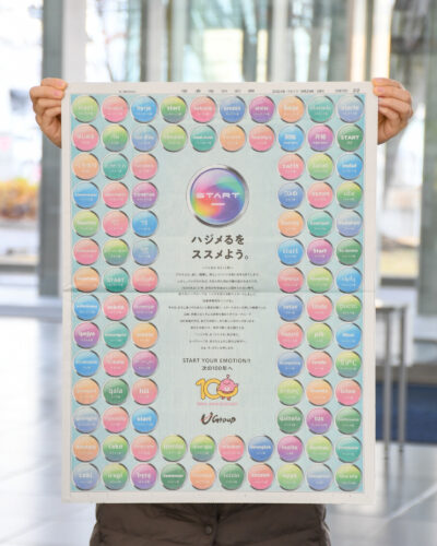 新聞一面を使った大きなクリエイティブで、